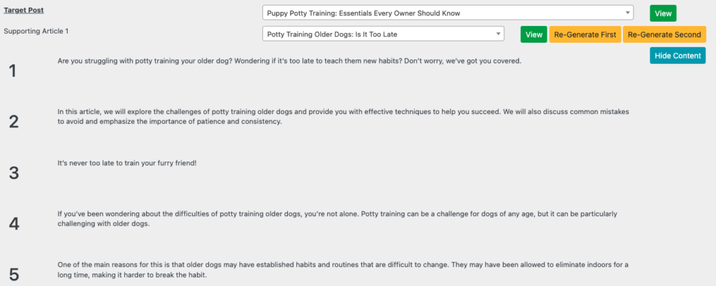 After you’ve selected all of your supporting articles, click Generate for the first Supporting Article.