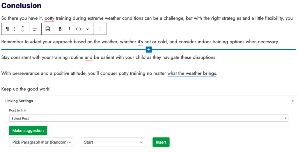 Once you have everything you like, just click “Insert”. It will add the sentence with the link to the Supporting Article.